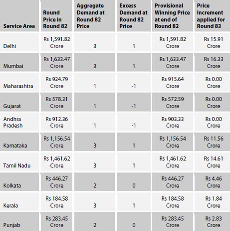 The bid for Mumbai remained the highest after 82 rounds on the eleventh day. It had touched Rs 16.33 billion, higher than Delhi’s bid of Rs 15.91 billion.