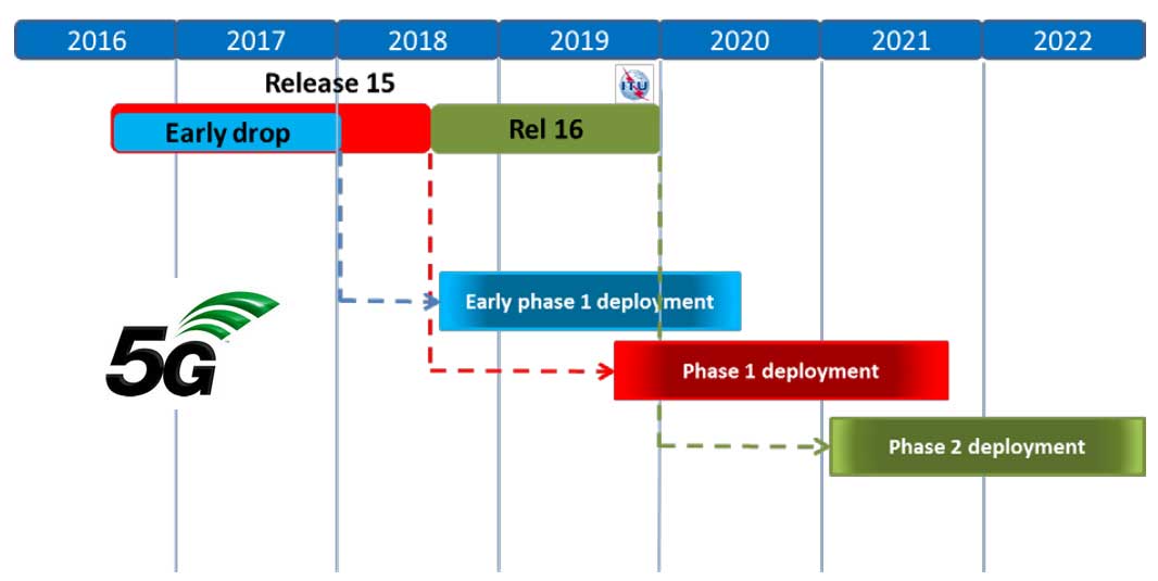 3GPP aims to complete initial 5G specifications with Release 15 by mid-2018 whereas Release 16 is targeted by end of 2019. Release 15 will enable the first phase of expected deployments in 2020.