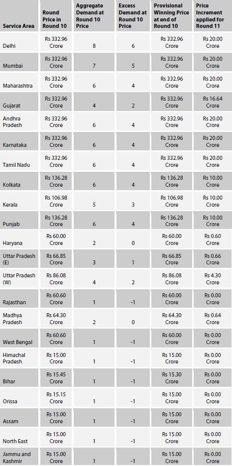 BWA Auction has reached to 3199.29 crore ($670 million) rupees at the end of Day. So far 10 rounds of auction has been completed.